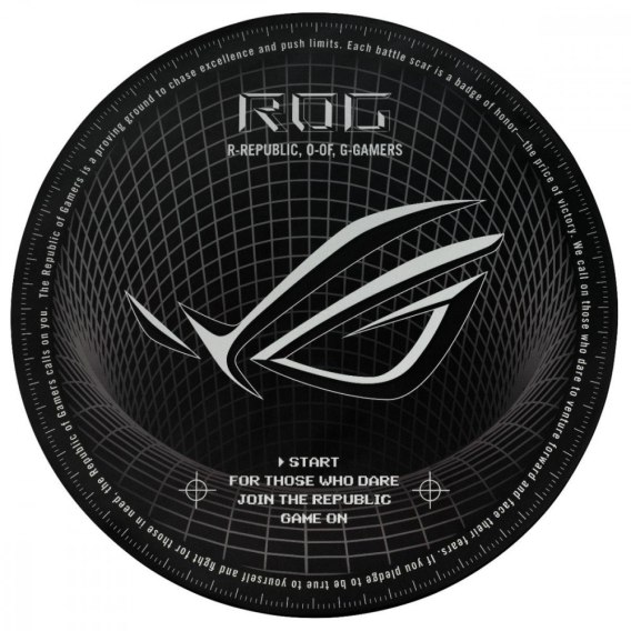 - Design inspirowany kosmosem: zawiera kosmiczne elementy, zakrzywione linie inspirowane grawitacją, naśladujące czarną dziurę, oraz charakterystyczne oznaczenia ROG