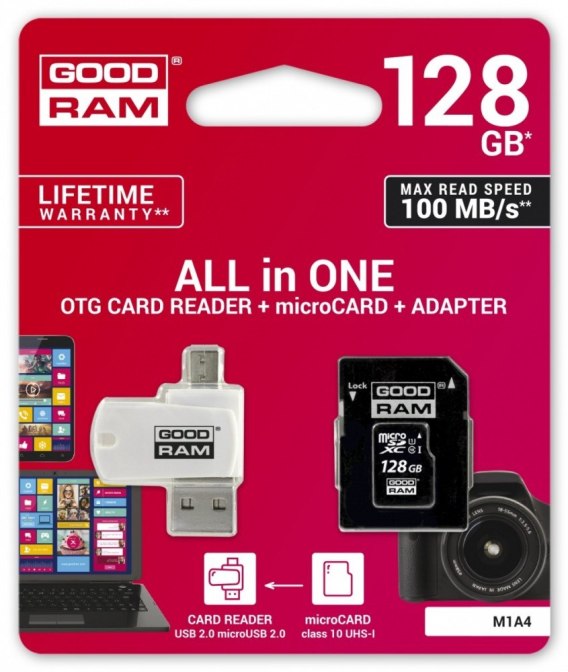 GOODRAM Karta microSDHC 128GB CL10 + adapter + czytnik