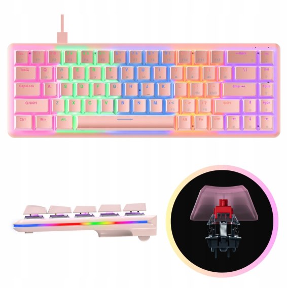 Klawiatura Rampage REBEL mechaniczna niskoprofilowa gamingowa różowa