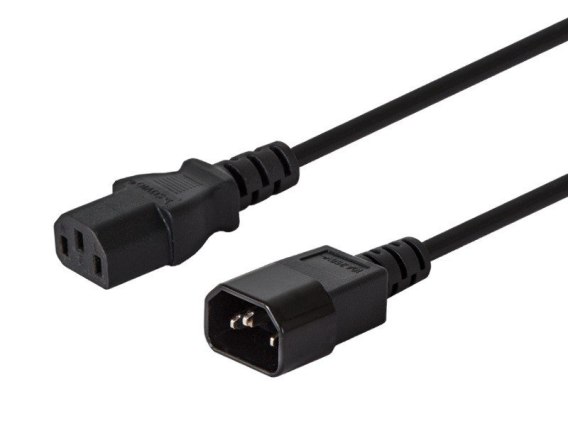 Kabel wyposażony w złącza C13 i C14 to uniwersalny przedłużacz pozwalający na wygodne rozszerzenie zasięgu zasilania dla różnych urządzeń biurowych takich jak komputery czy monitory. Solidna konstrukcja zawierająca trzy miedziane przewody o przekroju 0,75 mm2, gwarantuje bezpieczne i trwałe połączenie eliminując ryzyko przerw w zasilaniu.