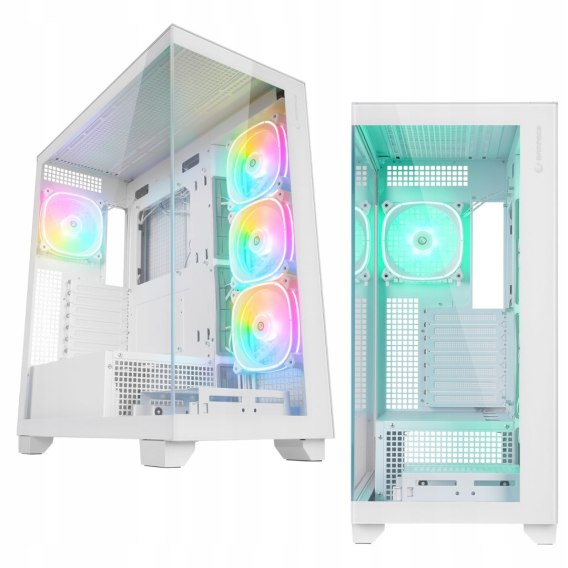 • Rampage Hydra V1 Obudowa PC gaming 4x wentylator ARGB USB C USB A hub biały