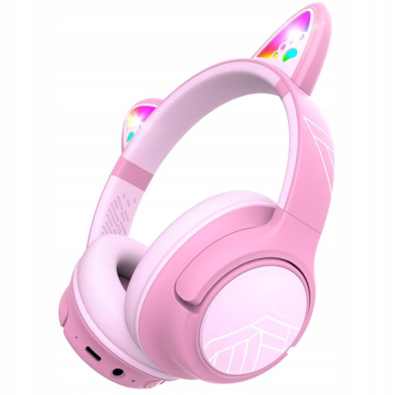 Kocie uszy słuchawek świecą wielokolorowym światłem LED RGB, tworząc efekt, który od razu przyciąga uwagę najmłodszych.