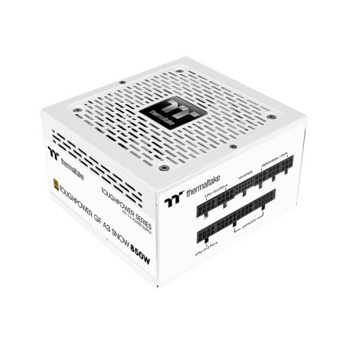 Zasilacz Toughpower GF A3 850W Gold F Modular 12cm Gen5 Snow charakteryzuje się solidnym wykonaniem oraz imponującą mocą wynoszącą aż 850 W. Dzięki temu z łatwością zasili nawet najbardziej wymagające konfiguracje komputerowe, zapewniając stabilne i niezawodne działanie.